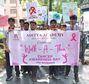সায়ন দেবনাথ : কলকাতা, ৭ নভেম্বর, ২০২৫। আদিত্য অ্যাকাডেমি সিনিয়র সেকেন্ডারি দমদম-এর ইন্টারঅ্যাক্ট ক্লাব এক অনন্য উদ্যোগ গ্রহণ করে ২০২৫ সালের ৭ই নভেম্বর জাতীয় ক্যান্সার সচেতনতা দিবস উপলক্ষে এক অর্থবহ জনসচেতনতা কর্মসূচি পালন করে। স্কুলের সকল শিক্ষার্থীদের অংশগ্রহণে আয়োজিত হয় ৩ কিমি নীরব পদযাত্রা, চিকিৎসকদের সচেতনতা বক্তৃতা এবং ডায়মন্ড প্লাজা মলের উন্মুক্ত লবিতে পরিবেশিত এক চিন্তাশীল পথনাটিকা।