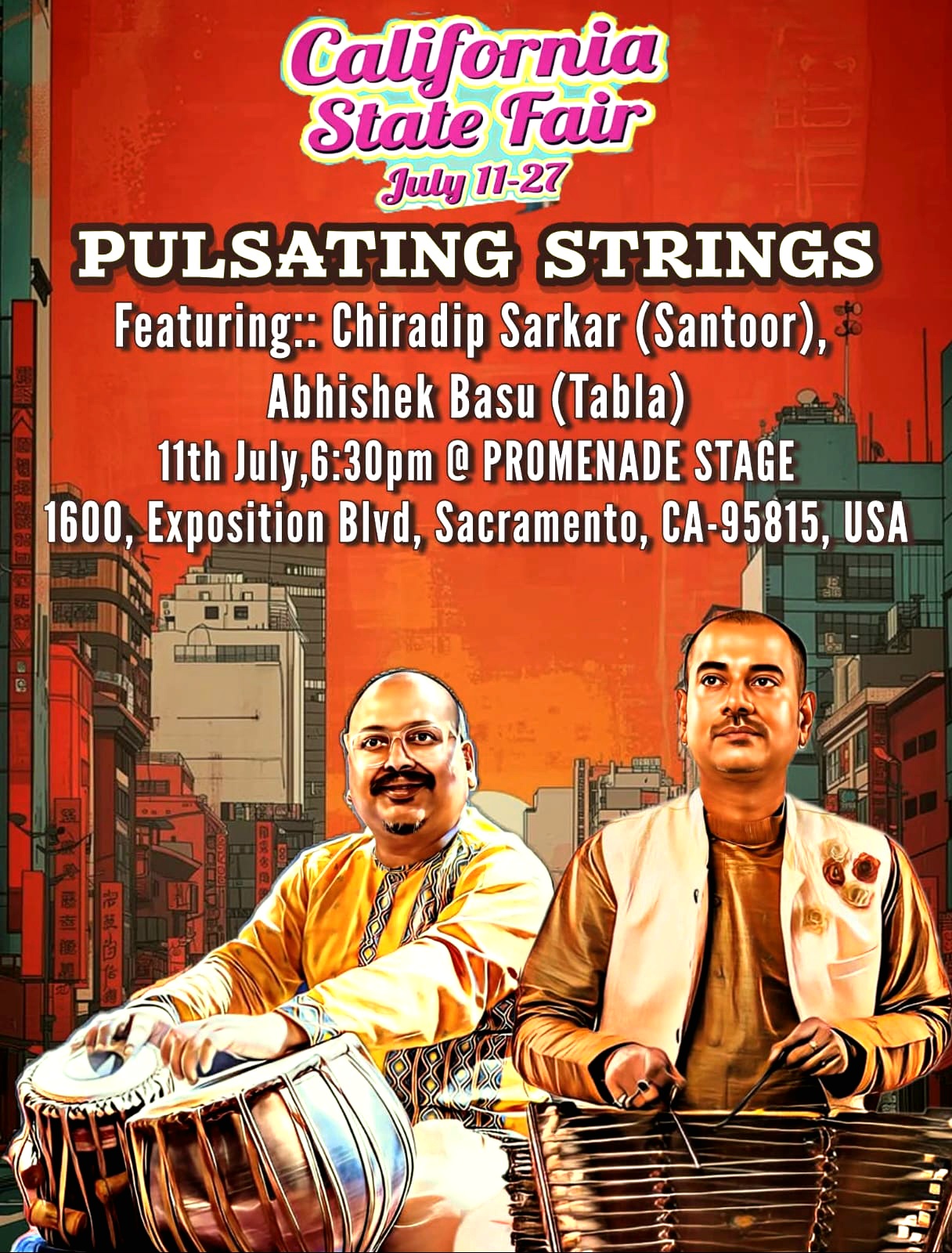 Pulsating Strings – ইউবা সিটি, ক্যালিফোর্নিয়া (১৪ সেপ্টেম্বর, ২০২৫) সাটার থিয়েটার সেন্টার ফর দ্য আর্টস-এ অনুষ্ঠিত এই কনসার্টে অভিষেক ও চিরদীপের যুগলবন্দি স্থানীয় শ্রোতাদের মুগ্ধ করে।