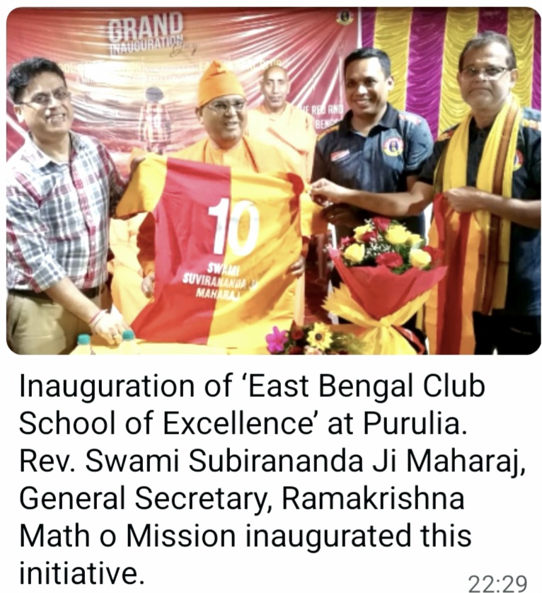 নিজস্ব প্রতিনিধি : পুরুলিয়া, ২৭ শে অক্টোবর ২০২৫।ভারতীয় ফুটবলের ভবিষ্যৎকে আলো দেখানোর মহতী উদ্যোগে পা বাড়ালো ইস্টবেঙ্গল ক্লাব। স্কুল অফ এক্সেলেন্সের পদক্ষেপকে সামনে রেখে তার সূচনা করে ফেললো রামকৃষ্ণ মিশনের অনুপ্রেরণায় পুরুলিয়ার বরনডাঙার ফিলিক্স স্কুল অফ এডুকেশনের সঙ্গে। স্বামী লোকেশ্বরানন্দজি ‘র অনুসারী নানৃতাম ২০০৮ সালে এই অঞ্চলে প্রথম স্থাপনা করে স্বামী লোকেশ্বরানন্দজি আই হাসপাতাল, যা আজ বাংলার অন্যতম বৃহৎ আই হাসপাতাল। ৮৫ শতাংশ মানুষের জন্য এখানে পরিষেবা সম্পূর্ন নিখরচায় দেওয়া হয়।