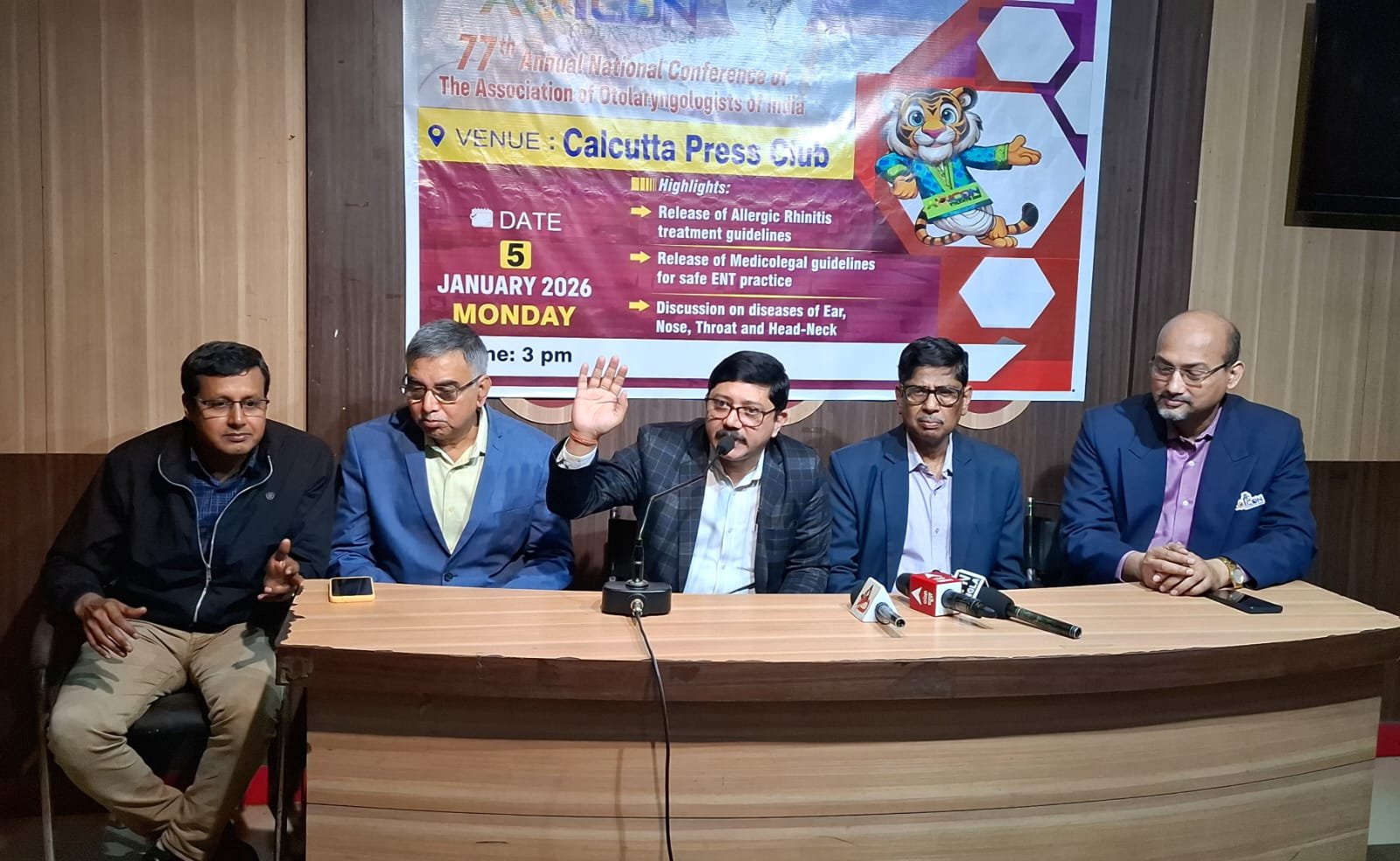 অ্যালার্জিক রাইনাইটিসকে প্রধান গুরুত্ব দিয়ে দীর্ঘ ৯ বছর পর নাক-কান-গলা(ইএনটি) বিশেষজ্ঞদের ৭৭ তম জাতীয় সম্মেলন কলকাতায় অনুষ্ঠিত হতে চলেছে। ইএনটি বিশেষজ্ঞদের জাতীয় সংগঠন *অ্যাসোসিয়েশন অফ অটোল্যারিঙ্গলজিস্ট অফ ইন্ডিয়ার (AOI) এই বাৎসরিক সম্মেলন (AOICON-2026)* আগামী ৮-১১ জানুয়ারি বিশ্ব বাংলা কনভেনশন সেন্টারে অনুষ্ঠিত হবে।