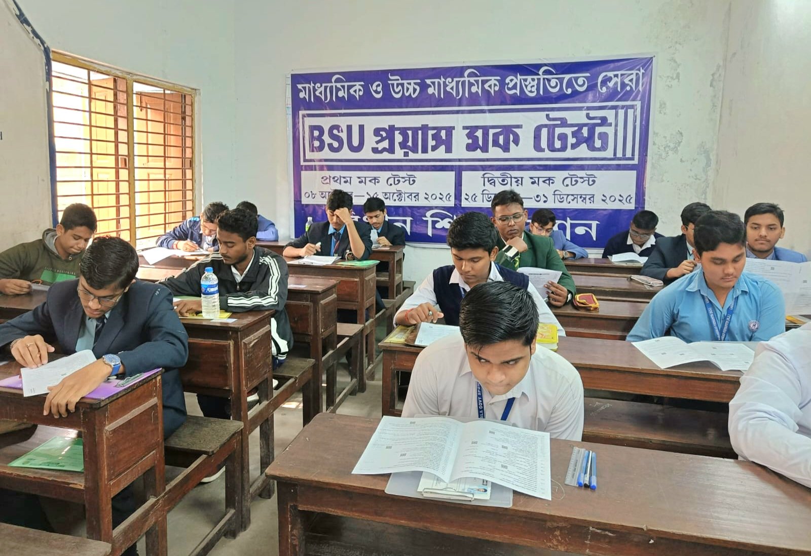 নিজস্ব প্রতিনিধি : কলকাতা, ২৫ ডিসেম্বর, ২০২৫। ছাত্রছাত্রীদের কাছে মাধ‍্যমিক পরীক্ষা জীবনের প্রথম বড় পরীক্ষা। স্বভাবতই তাদের মনে কিছুটা ভীতির সঞ্চার হয়। এই ভয়ভীতি কাটাবার জন‍্য মকটেস্টের একটা বড় ভূমিকা থাকে। বিগত প্রায় দশ বছর ধরে মাধ‍্যমিক পরীক্ষার্থীদের জন‍্য প্রস্তুতি সহায়ক বি এস ইউ প্রয়াস মক টেস্ট পরিচালনা করছে বিধান শিশু উদ‍্যান। খুব সামান্য খরচ নেওয়া হয় বলে রাজ‍্যের প্রত‍্যন্ত অঞ্চলের সাধারণ ঘরের ছাত্রছাত্রীরা বি এস ইউ মক টেস্টে অংশগ্রহণ করতে পারে। ২০২৬ এর মাধ‍্যমিক প্রস্তুতির জন‍্য দ্বিতীয় মক টেস্ট শুরু হয়েছে আজ বৃহস্পতিবার থেকে। রাজ‍্যব‍্যাপী এই মক টেস্টে কয়েক হাজার ছাত্রছাত্রী অংশগ্রহণ করছে। আসল ২০২৬ সালের মাধ‍্যমিক পরীক্ষার আগে যাতে ছাত্রছাত্রীরা বি এস ইউ প্রয়াস মক টেস্টের মাধ‍্যমে মহড়া দিয়ে নিজেদের আত্মবিশ্বাস বাড়াতে পারে সেই জন‍্যই বিধান শিশু উদ‍্যানের এই উদ‍্যোগ। বিগত আট বছরে বিধান শিশু উদ‍্যান পরিচালিত মক টেস্টে অংশগ্রহণকারী ১৭৪ জন ছাত্রছাত্রী রাজ‍্য মেধা তালিকায় স্থান করে নিয়েছে।