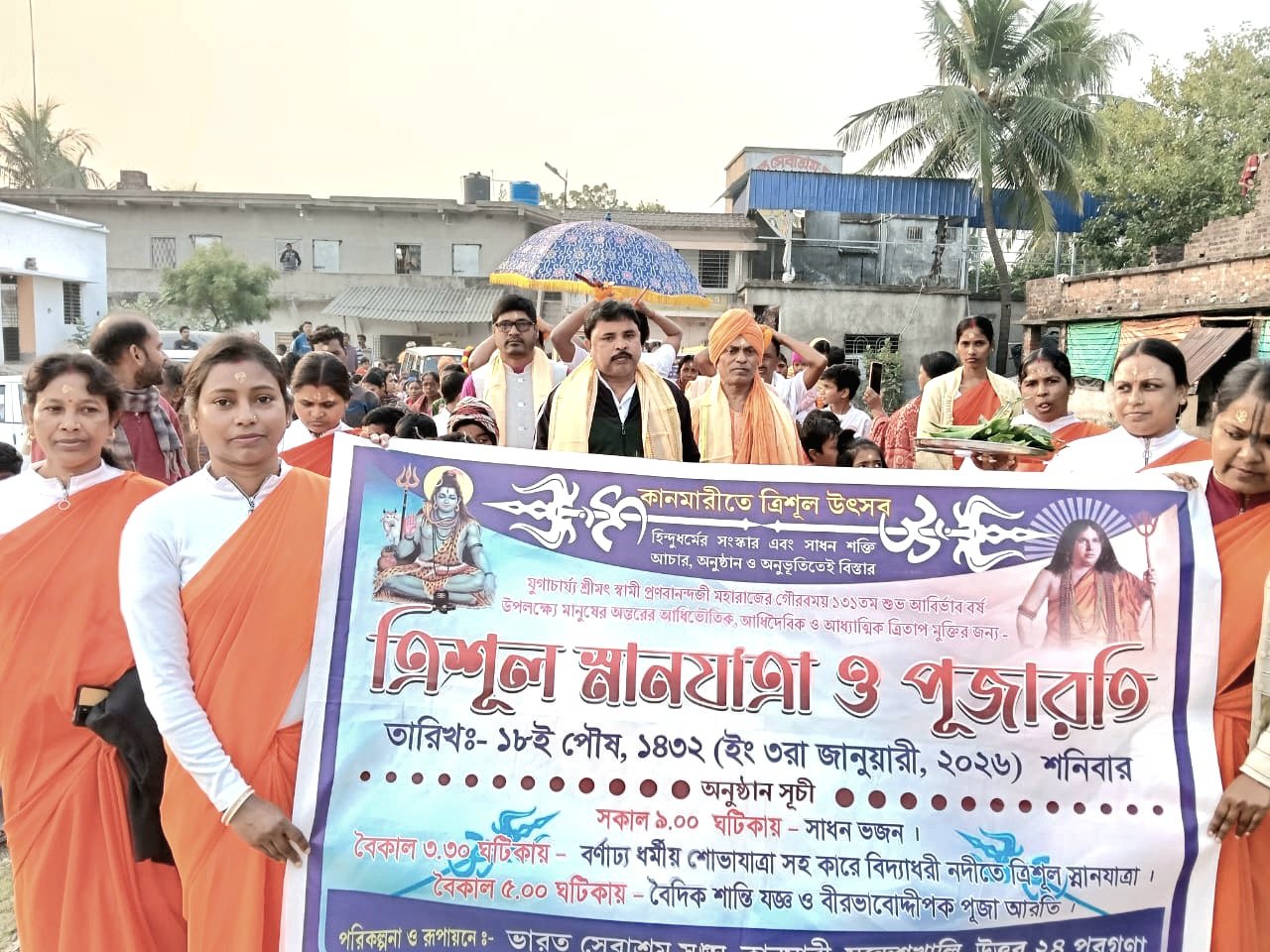 নিজস্ব প্রতিনিধি : সন্দেশখালী, ৩ জানুয়ারি, ২০২৬। উত্তর ২৪ পরগনার সন্দেশখালী ব্লকের কানমারী গ্রামীণ সেবাকেন্দ্রে সাড়ম্বরে পালিত হলো ভারত সেবাশ্রম সঙ্ঘের ত্রিশূল পূর্ণিমা। প্রতি বছর পৌষ পূর্ণিমার তিথিতে বিশ্বমানব কল্যাণের প্রার্থনায় সঙ্ঘের বিভিন্ন শাখায় এই আধ্যাত্মিক অনুষ্ঠান অনুষ্ঠিত হয়।