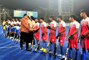 নিজস্ব প্রতিনিধি: কলকাতা, ১৬ নভেম্বর, ২০২৫। ১২৬তম বেটন কাপে চ্যাম্পিয়ন হল সেনা একাদশ(লাল) দল। রবিবার বিবেকানন্দ যুবভারতী হকি স্টেডিয়ামে ভারতীয় বায়ু সেনা দলকে হারাল ২-০ গোলে সেনা দল। ফাইনাল ম্যাচ দেখতে এদিন স্টেডিয়ামে প্রচুর দর্শক এসে ছিলেন। বলতে পারা যায় হকি মাঠে এত দর্শক বহুদিন পর দেখা গেল কলকাতায় বেটন কাপ হকিতে। খেলা শুরুর সময় থেকেই আক্রমণ-প্রতিআক্রমণে বেশ জমে ওঠে খেলা। প্রথম এবং দ্বিতীয় কোয়ার্টারে কোনও দলই গোল করতে পারেনি। তৃতীয় কোয়ার্টারের খেলার ৩৭ মিনিটে সিমরানদীপ সিংয়ের ফিল্ড গোলে সেনা একাদশ (লাল) দল এগিয়ে যায়। তৃতীয় কোয়ার্টারের শেষ লগ্নে ধরিয়াল সিং যাদবের গোলে সেনা একাদশ ২-০ গোলে এগিয়ে যায়। এরপরই প্রবল আত্মবিশ্বাসী হয়ে ওঠে সেনা দল। তারা খেলার উপর নিরঙ্কুশ প্রাধান্য বিস্তার করে। বিক্ষিপ্তভাবে আক্রমণে উঠে এলেও বায়ু সেনা আর গোলের ব্যবধান কমাতে পারেনি। সারা ম্যাচে দশটি পেনাল্টি কর্নার পেয়েও তার সদ্ব্যবহার করতে পারেনি বায়ু সেনারা। ম্যাচ শুরুর আগে দু’দলের খেলোয়াড়দের সঙ্গে পরিচিত হন ক্রীড়ামন্ত্রী অরূপ বিশ্বাস, হকি বেঙ্গলের সভাপতি তথা দমকল মন্ত্রী সুজিত বসু।