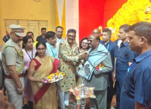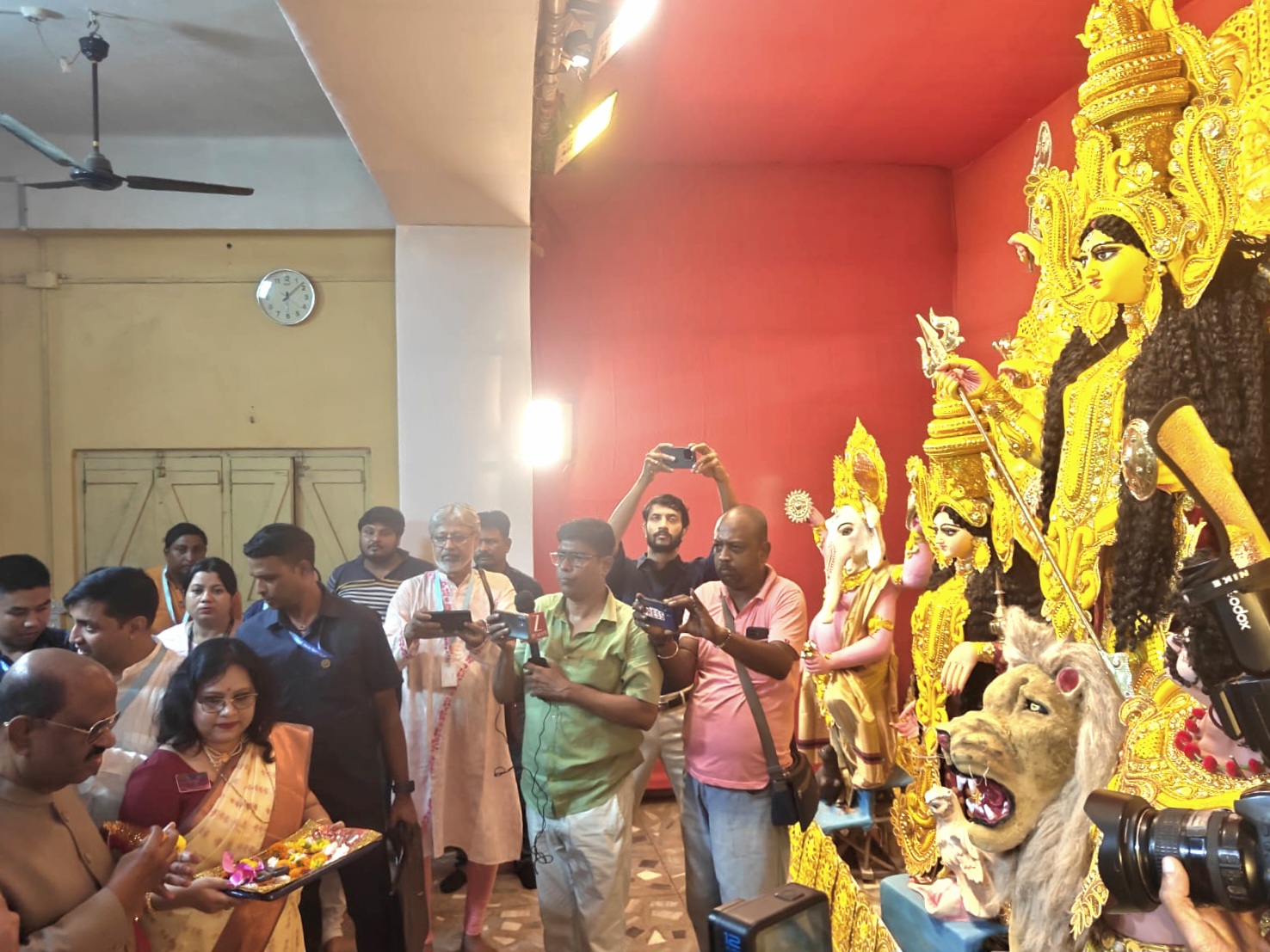 নিজস্ব প্রতিনিধি : হাওড়া, ২৬ সেপ্টেম্বর, ২০২৫। হাওড়ার সাঁত্রাগাছির অন্যতম প্রাচীন ও ঐতিহ্যবাহী পূজা সাঁত্রাগাছি সার্বজনীন দুর্গোৎসব এবার ৯৮তম বর্ষে পড়ল। বৃহস্পতিবার এই পূজোর আনুষ্ঠানিক উদ্বোধন করেন ভারত সেবাশ্রম সঙ্ঘের সন্নাসী স্বামী উত্তমানন্দ মহারাজ। সঙ্গে সমাজের বিশেষ ভাবে সক্ষম ছেলে-মেয়েরা গান গেয়ে শোনান। উপস্থিত ছিলেন সাঁতরাগাছি সার্ব্বজনীন দুর্গোৎসব এর চেয়ারম্যান শ্রী গৌরব মৈত্র।
