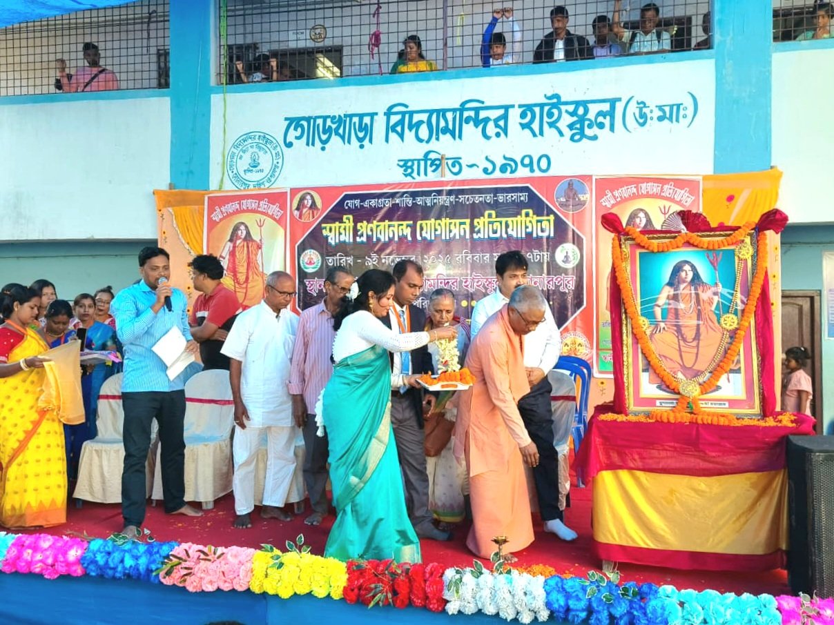 সায়ন দেবনাথ : সোনারপুর, ৯ নভেম্বর, ২০২৫।সোনারপুর গোড়খাড়া বিদ্যামন্দির হাইস্কুলের মাঠে এক অনন্য সাংস্কৃতিক ও শারীরিক দক্ষতার প্রদর্শনী অনুষ্ঠিত হল। মন্মথপুর প্রণব মন্দির পরিকল্পিত স্বামী প্রণবানন্দ আর্ট আকাডেমি-র উদ্যোগে আয়োজিত হল স্বামী প্রণবানন্দ যোগাসন প্রতিযোগিতা। দক্ষিণ ২৪ পরগণা জেলায় এই ধরনের বৃহৎ যোগাসন প্রতিযোগিতা এবারই প্রথম, যেখানে ৮০০-রও বেশি প্রতিযোগী এদিন অংশগ্রহণ করেন।