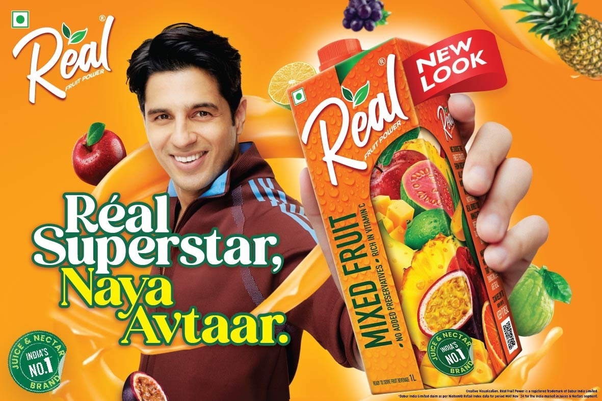 Staff Reporter : Kolkata, 7 October 2025: Real juice, India’s leading packaged fruit juice & beverage company from the house of Dabur, announced the launch of its new refreshed packaging across its flagship Real nectar Range. Simultaneously, the brand has rolled out a new, marketing campaign featuring its popular brand ambassador, actor Sidharth Malhotra to share this new look with the consumer.