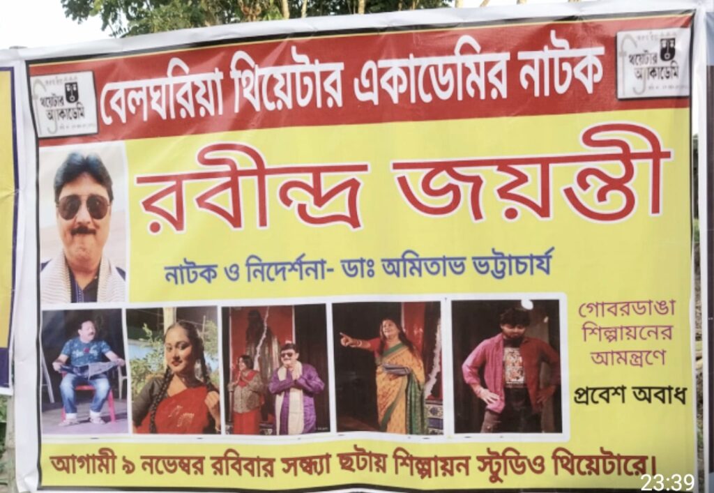 গোবরডাঙা শিল্পায়ন স্টুডিও থিয়েটারে মঞ্চস্থ হল জনপ্রিয় নাটক রবীন্দ্র জয়ন্তী….।