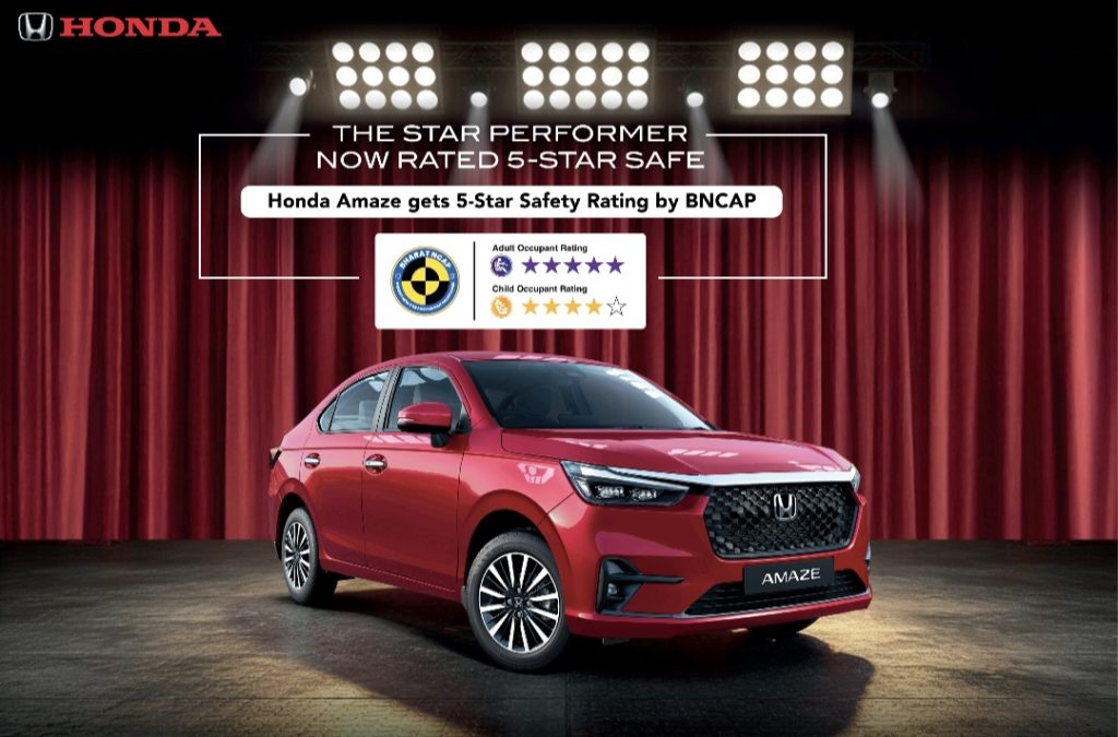 3rd Generation Honda Amaze achieves 5-star Safety Rating in Bharat NCAP Crash Tests for Adult Occupant Protection…. 3rd Generation Honda Amaze achieves 5-star Safety Rating in Bharat NCAP Crash Tests for Adult Occupant Protection…. November 30, 2025 | Business, Technology and WORLD WIDE