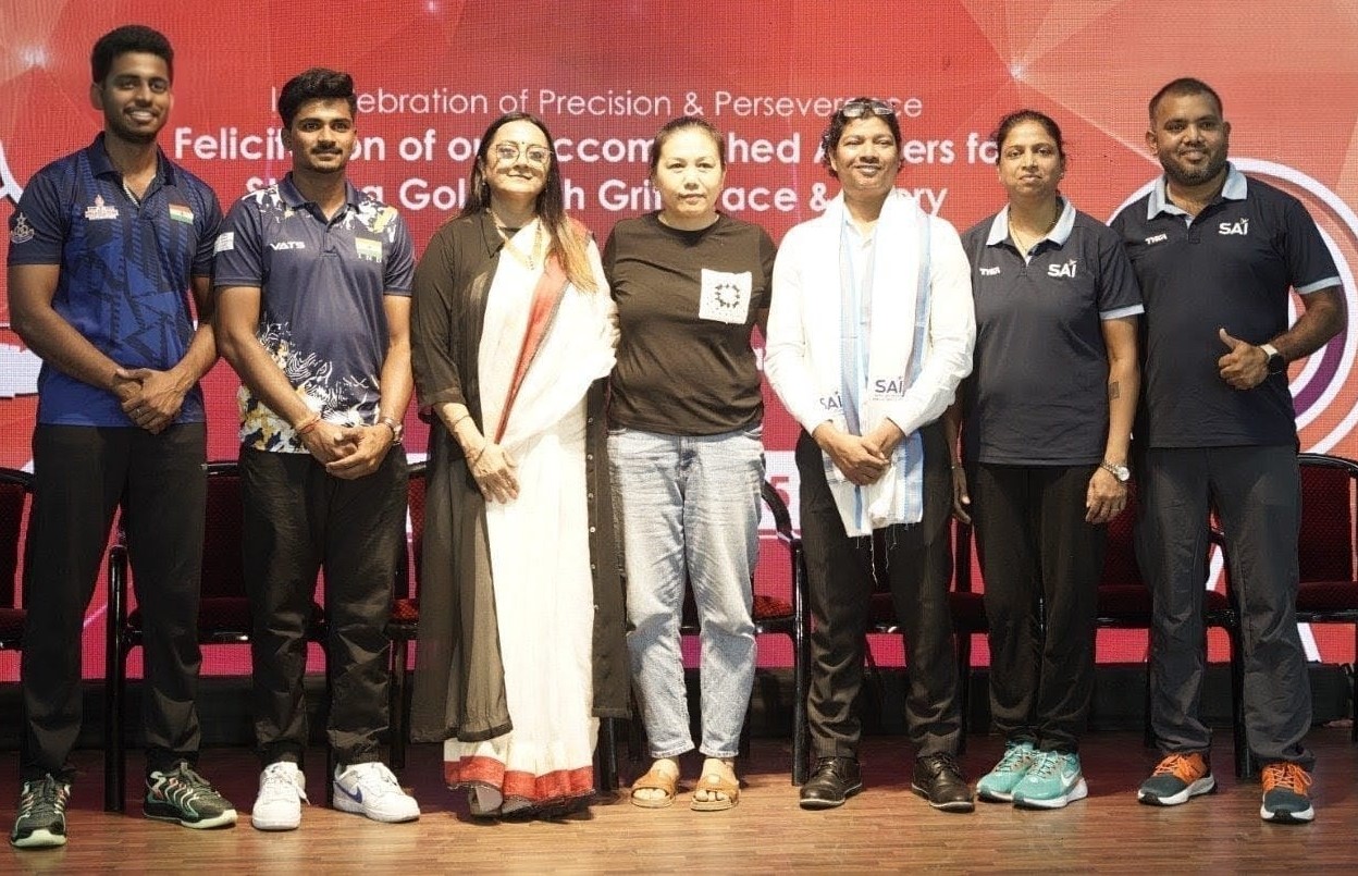 News stardom : Kolkata, 01 Aug 2025: The Sports Authority of India (SAI) National Centre of Excellence (NCOE) Kolkata on Friday felicitated two upcoming archers who won gold medals in major international tournaments recently. NCOE trainee Sahil Rajesh Jadhav clinched gold and silver medals at the FISU World University Games in Germany last week, and Shrey Bhardwaj won a hattrick of golds at the World Police and Fire Games in the USA recently.