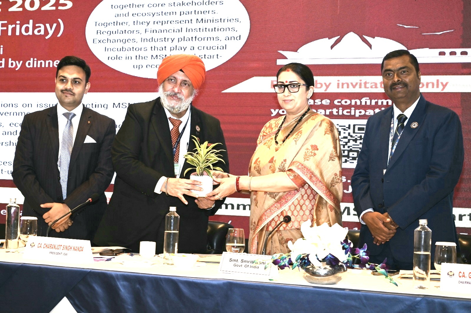 The event was inaugurated by *Smt. Smriti Irani, Former Union Cabinet Minister, Government of India in the presence of CA. Charanjot Singh Nanda, President, ICAI; CA (Dr.) Jai Kumar Batra, Secretary, ICAI; CA Gyan Chandra Misra, Chairman, Committee on MSME & Startups, ICAI, CA. Arpit Jagdish Kabra, Vice-Chairman, Committee on MSME & Startups, ICAI; Central Council Members and Regional Council Members of ICAI* .