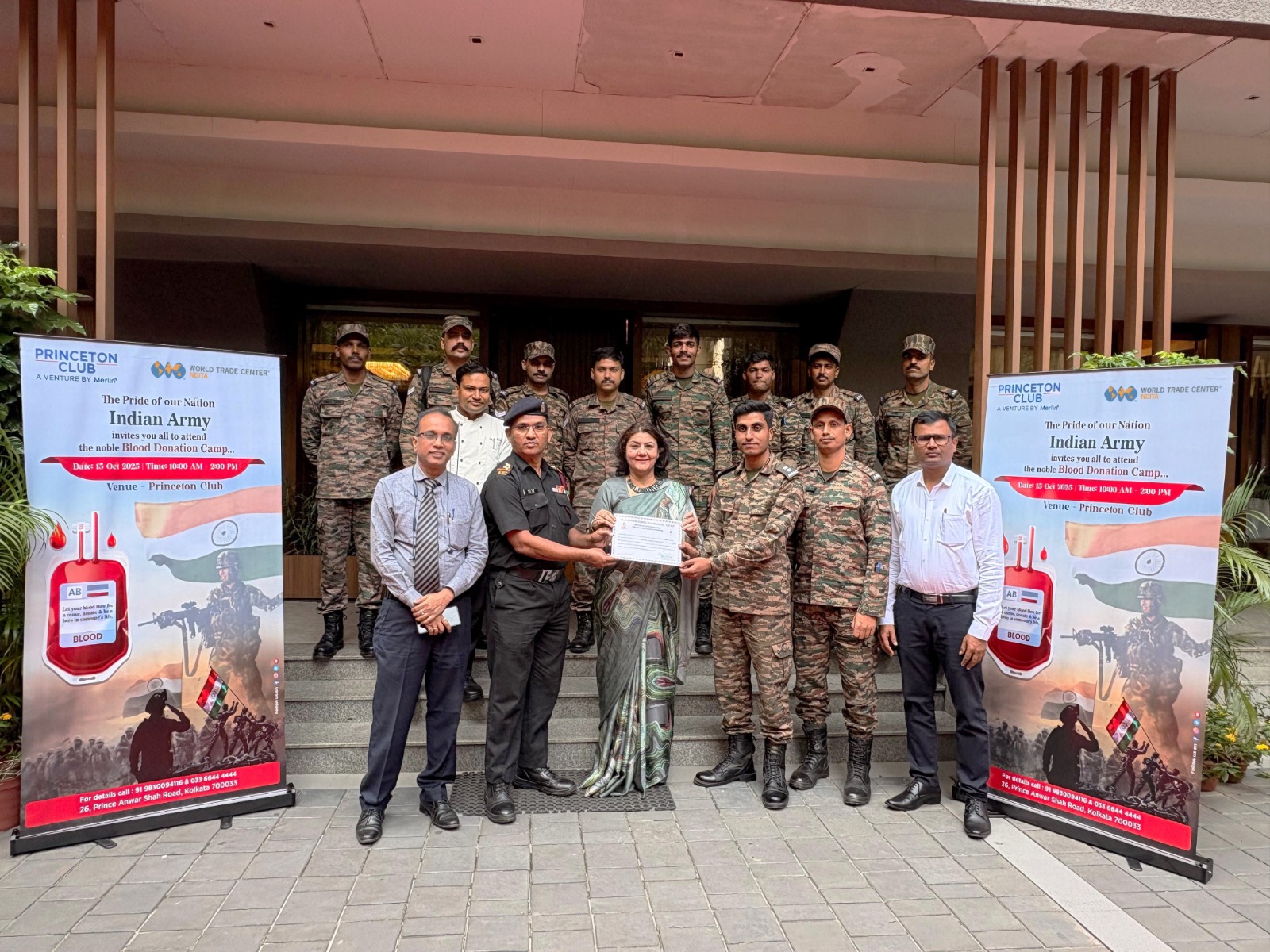 Staff Reporter : Kolkata, October 15, 2025: World Trade Center- NDITA and Princeton Club , in collaboration with the Indian Army, Eastern Command, successfully organised a Blood Donation Camp dedicated to supporting the brave soldiers of the nation. A total of 80 units of blood were collected during the drive, which will be utilised for Army personnel, their dependents, and veterans.